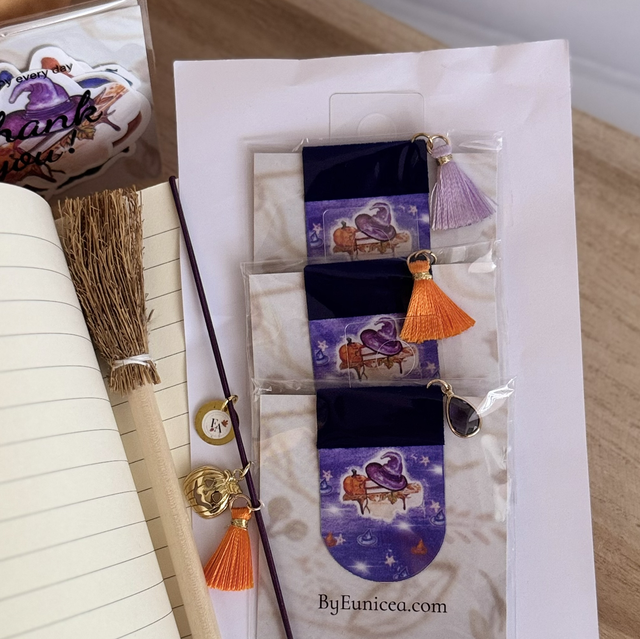 pour accompagner tes pages de livre 4 marque-pages Purple Witch qui se décline en 3 versions, dont une inédite, avec un cristal violet.