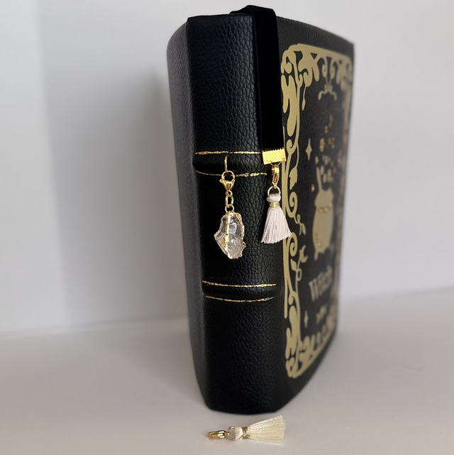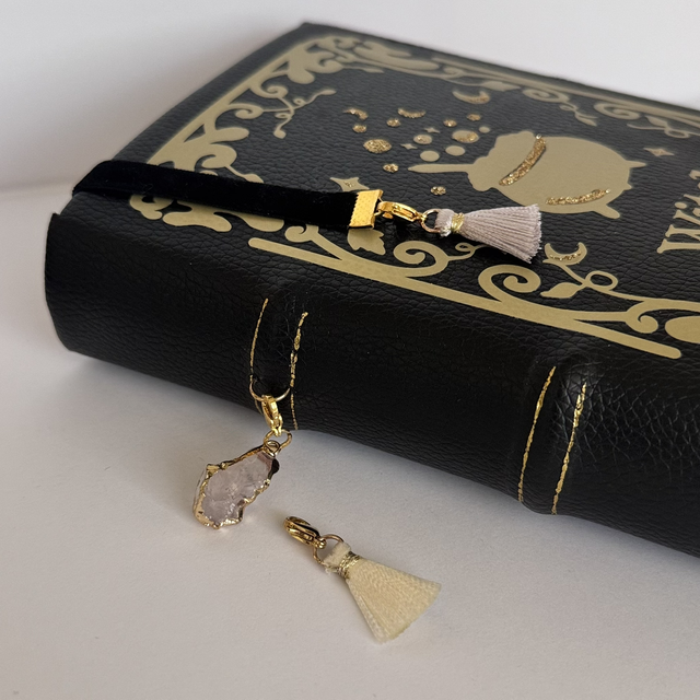 - Marque-pages ornés de charms ésotériques – Cristal et pompons pour une touche magique.